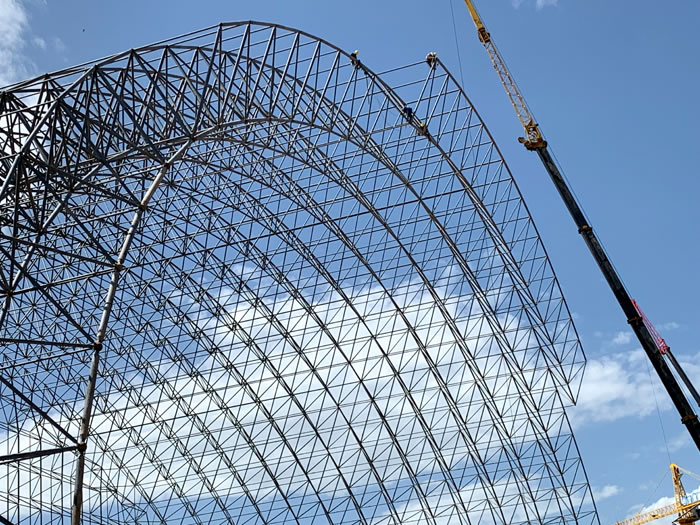 (2)网架加工前应对现场尺寸进行复测,确认无误后方可进行加工、安装;网架制作、运输、安装应遵守《空间网格结构技术规程》JGJ7-2010、《钢网架无锡螺栓球节点》JG/T 10-2009、《钢网架无锡螺栓球节点用高强度螺栓》 GB/T 16939-2016、《无锡钢结构无锡工程无锡施工规范》 GB50755-2012、《无锡钢结构无锡工程施工质量验收标准》 GB50205-2020。